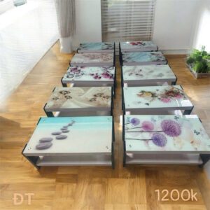 | 2. Bàn Sofa Kính Cường Lực / Kính 3D | Hiện đại & An toàn. Kính cường lực chịu lực tốt, không lo vỡ. Kính 3D tạo hiệu ứng chiều sâu, nghệ thuật và tinh tế cho không gian nhỏ. | Phù hợp: Căn hộ chung cư, phòng khách phong cách tối giản, trẻ trung. |